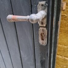 Houten poort zonder kozijn, te gebruiken als tuinpoort of als schuurdeur.