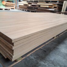 Deze (nieuwe) meubelpanelen van 18 mm dik zijn van gelamineerd spaanplaat met een mooie licht eiken kleur.