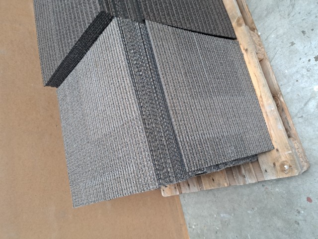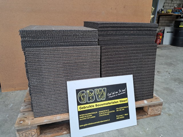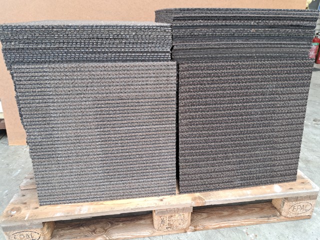 Deze gebruikte tapijttegels zijn nog prima te gebruiken voor in een hal, garage, schuur, zolder enz.