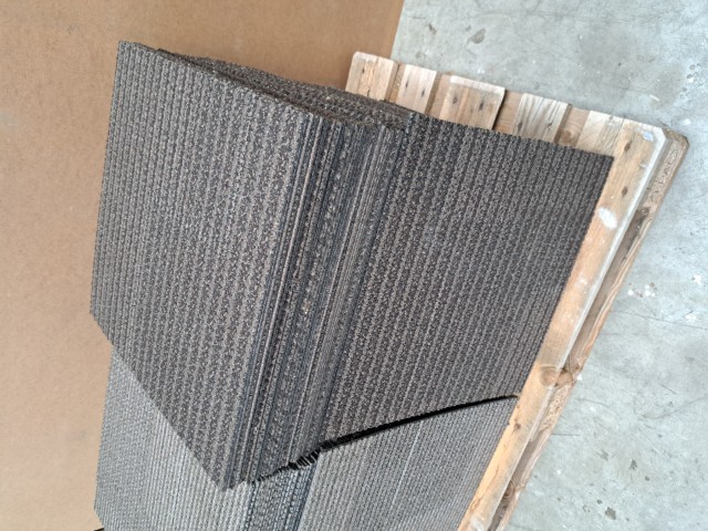 Deze gebruikte tapijttegels zijn nog prima te gebruiken voor in een hal, garage, schuur, zolder enz.