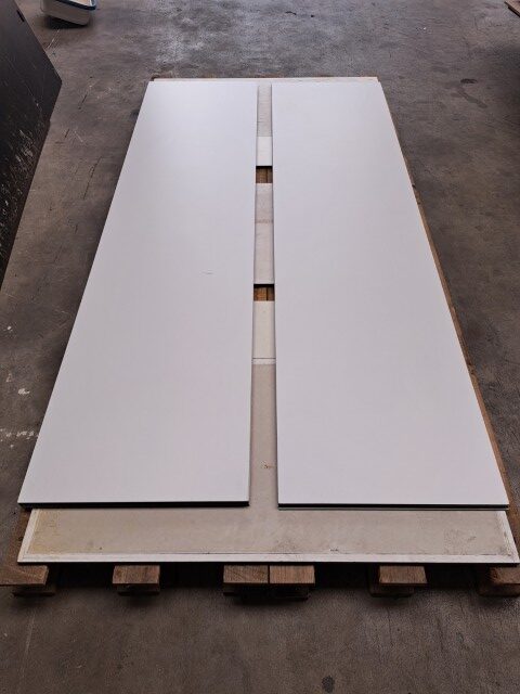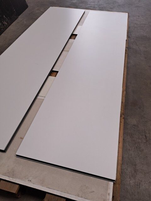 Nieuwe 2 zijdige witte trespa platen van 0,4 cm dik.